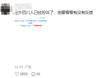 “在外四川人已经投诉了,倒要看看有没有反馈。”
