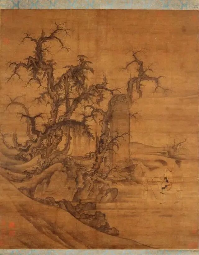 绢本,墨笔,淡设色。纵:181.5、横:116.5厘米